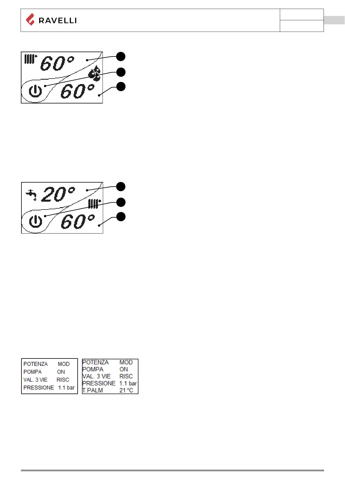 • VÁLVULA 3 VÍAS: indica si la válvula de tres vías está en posición de CALEFACCIÓN, SANITARIO, PUFFER o CALENTADOR.