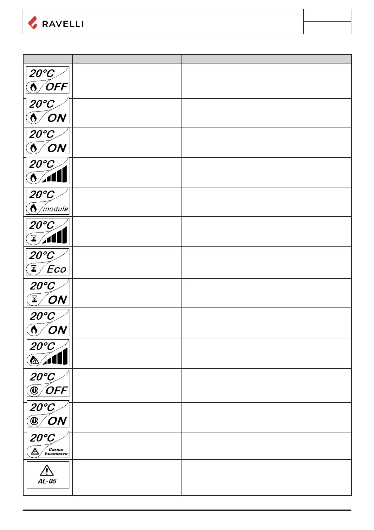 GENERIC ALARM The stove is in alarm state; refer to the troubleshooting chapter.