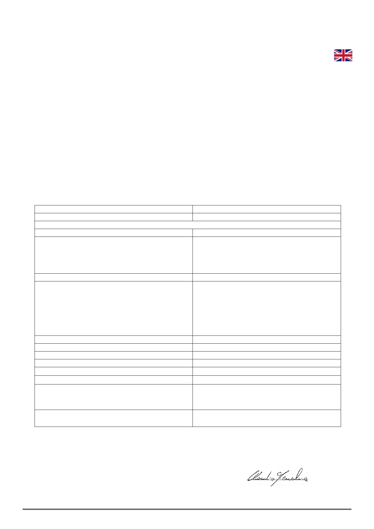 Signed for and on behalf of the manufacturer Claudio Mezzalira, Operations Manager