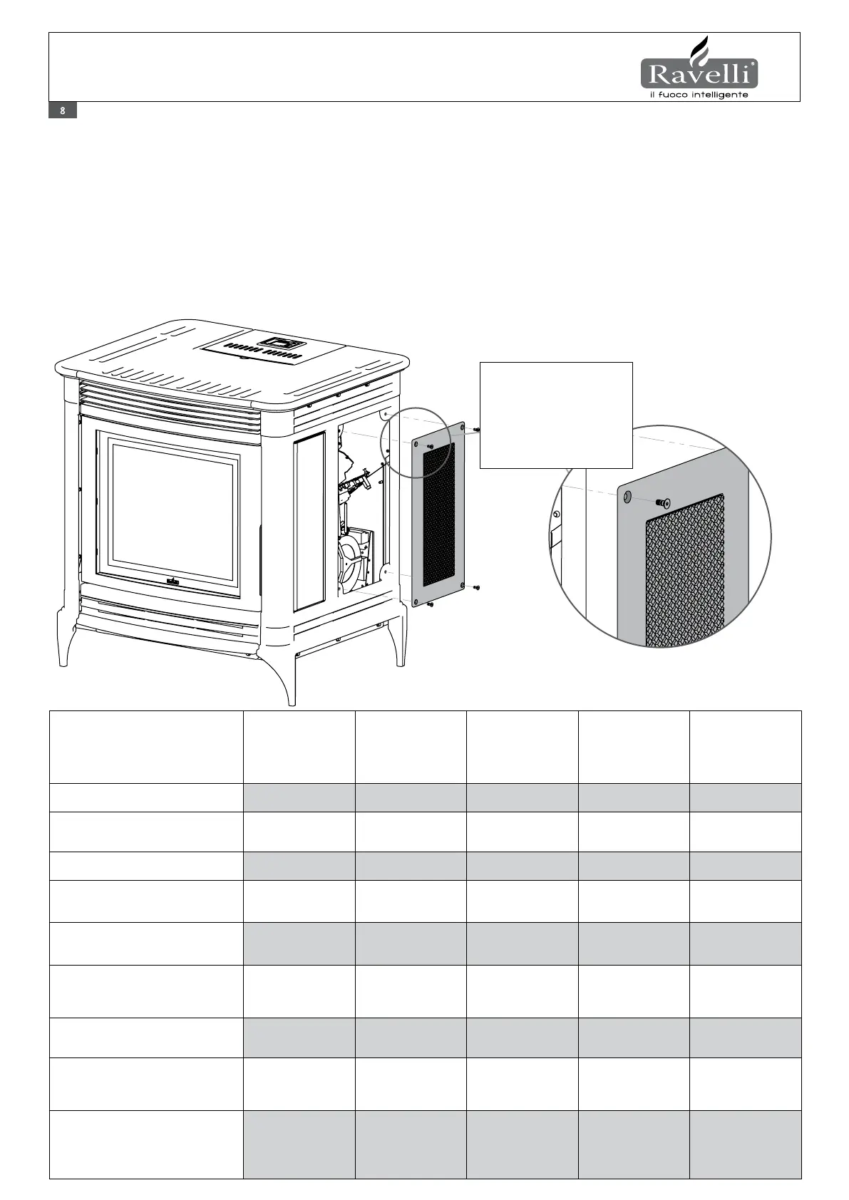 viti che li assicurano al corpo stufa.