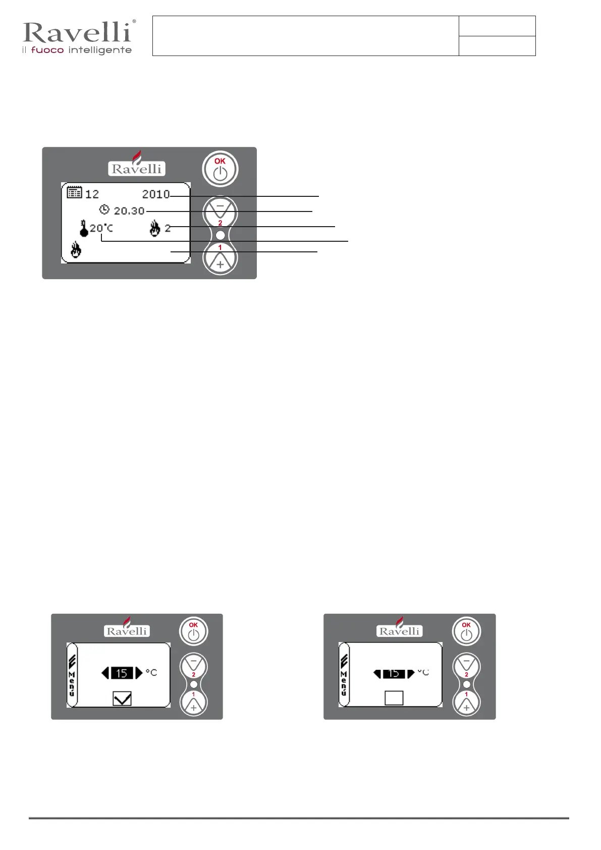 Pour dénir et modier la température, appuyez sur la touche numéro 1 pour accéder au menu dédié et dénissez la valeur souhaitée