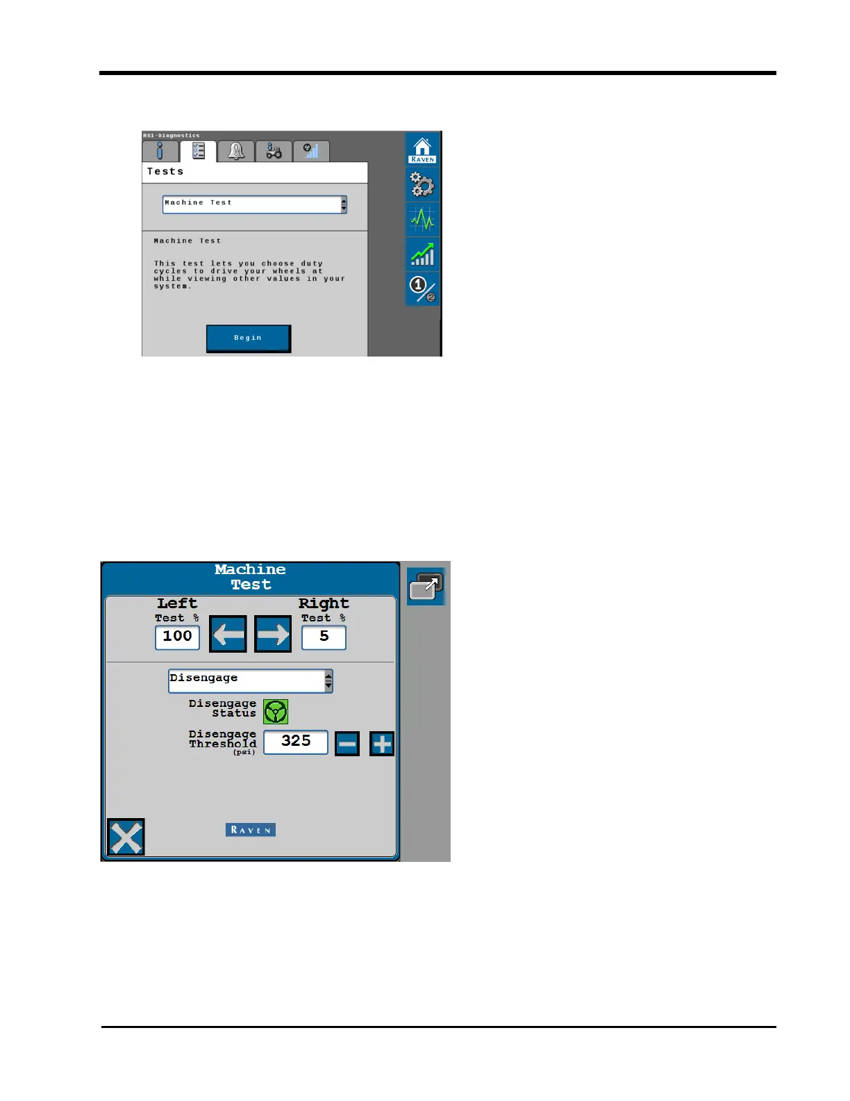 5. The Machine Test page displays with the Control Effort test at the top of the page.