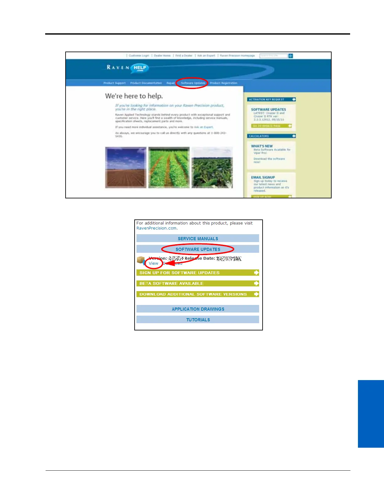 3. Select the Software Updates option to view available software options. Unless otherwise instructed by a