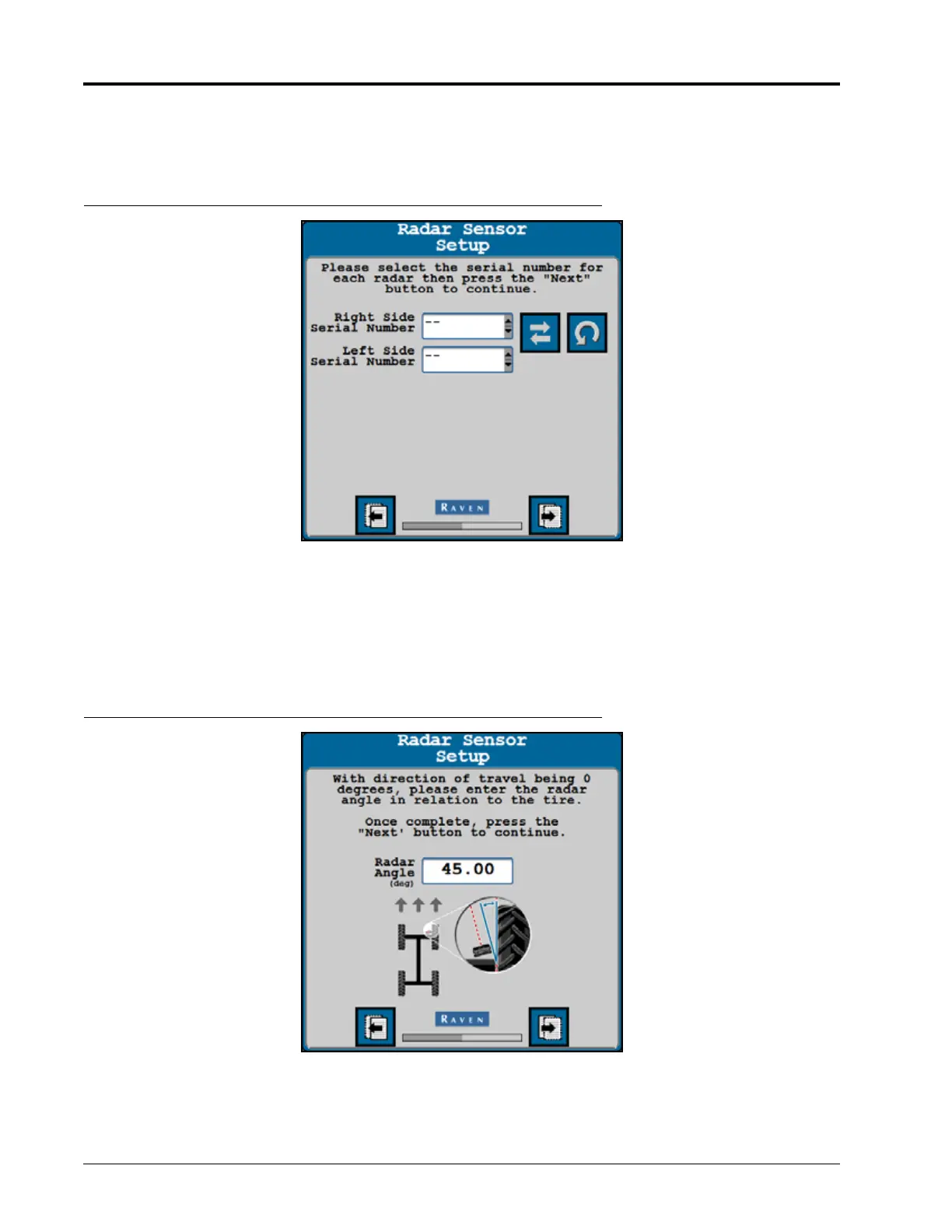 FIGURE 11. Left/Right Radar Sensor Setup Page
