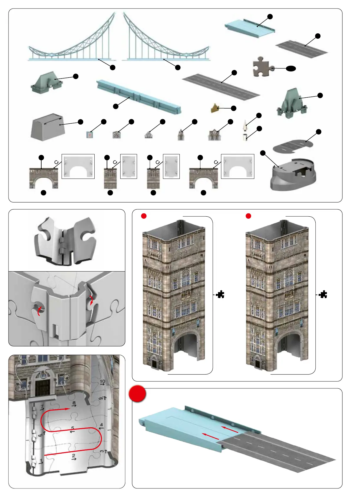 Ravensburger Tower Bridge - Tower Bridge Assembly; Puzzle Components and Base Assembly