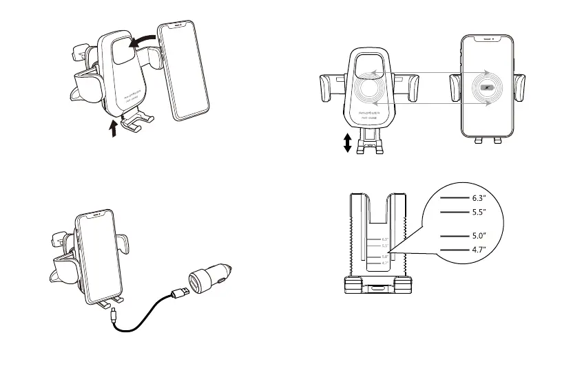 1. Place your phone onto the holder,the cradle will tighten and lock up automatically.