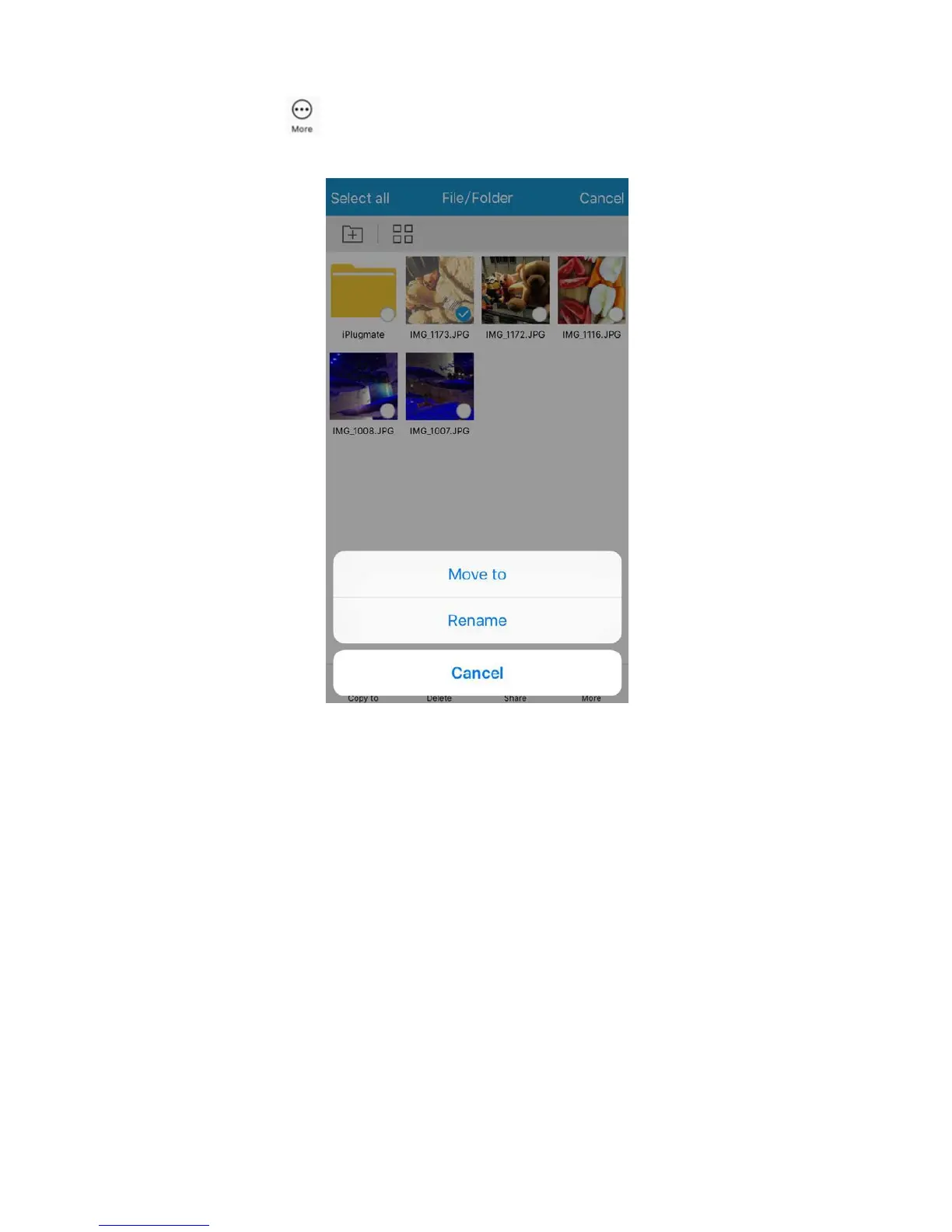 Tap on the More button to transfer or rename files, photos, videos, and