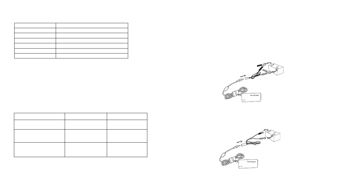 batería de coche. Luego conecte los terminales al cable DC. Por favor asegúrese de que las
