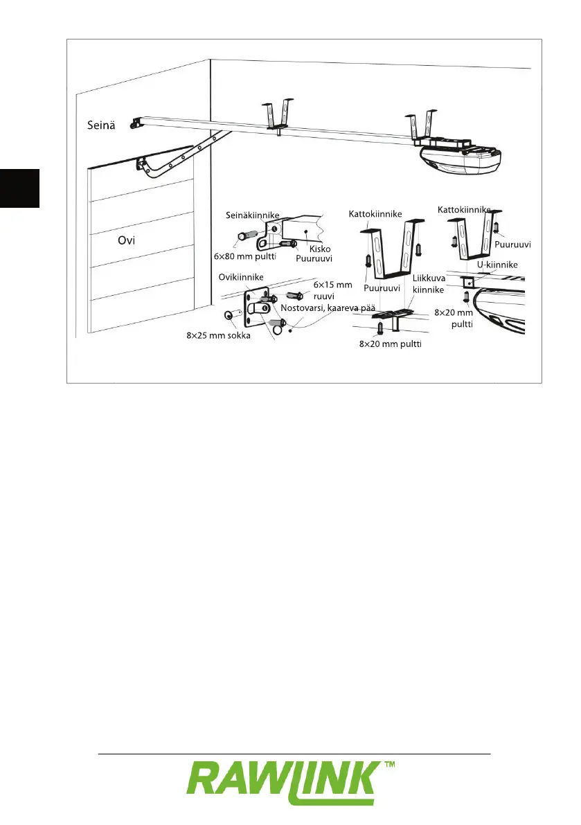 seinäkiinnikkeeseen 6x80 mm:n pultilla ja