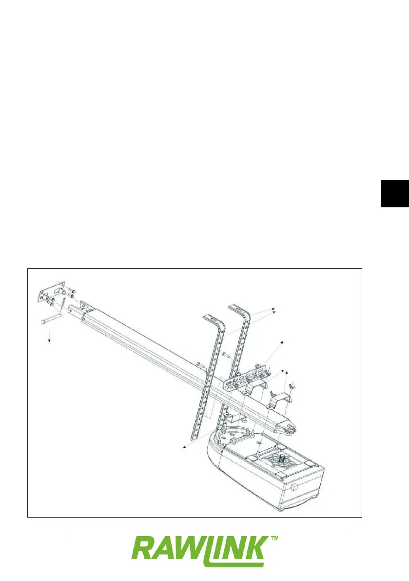 mithilfe der U-Beschläge an der Schiene (4).