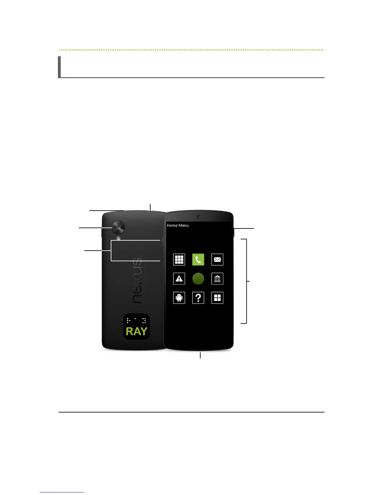 A typical RAY phone includes ON/OFF button, Volume Control, Touch screen, Earphone port,