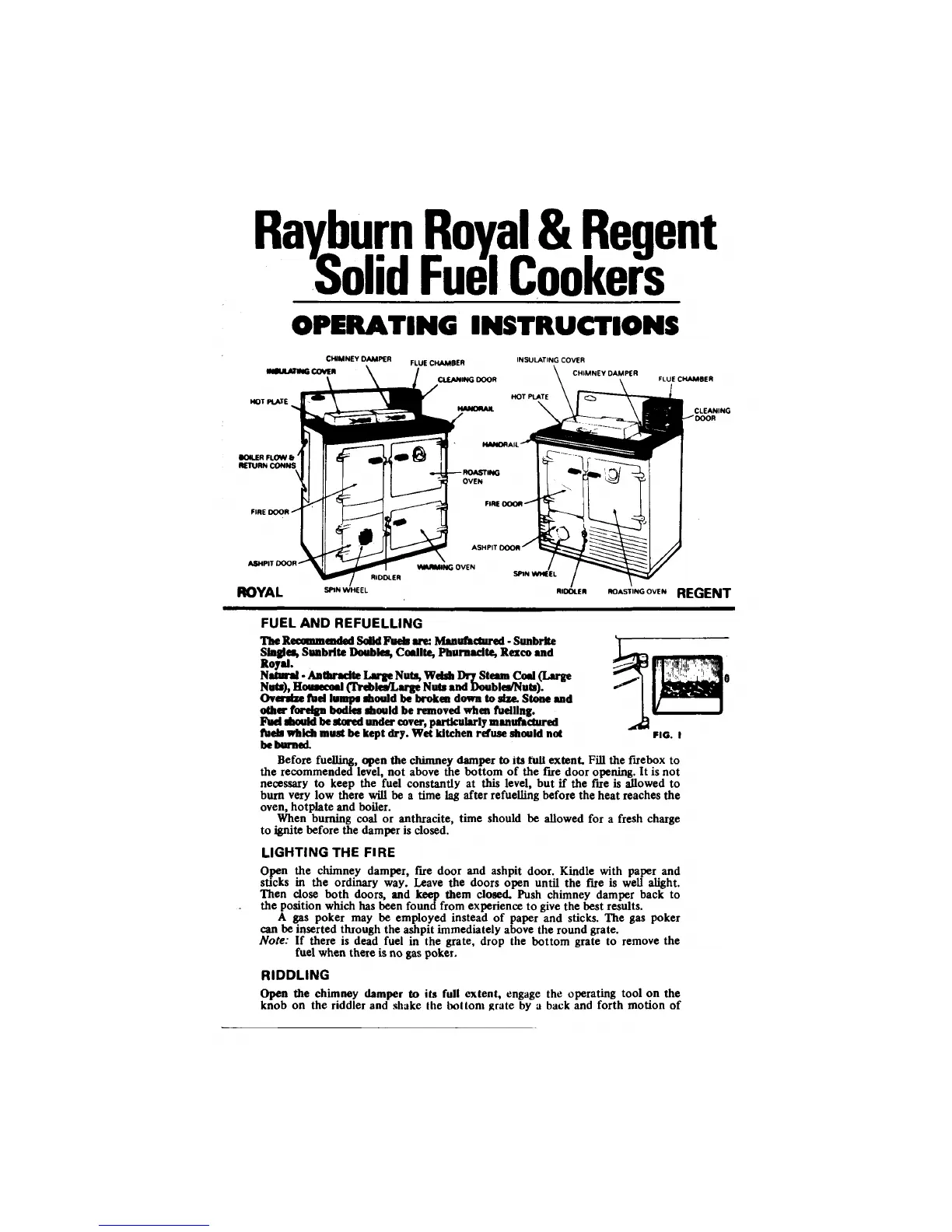 Rayburn Royal - Operating Instructions; Recommended Fuels and Refuelling; Lighting the Fire Safely; Riddling for Ash Removal