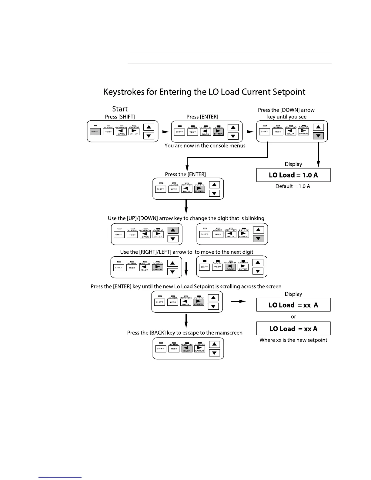 Raychem C910-485 - 4.2 Console Mode Menus: Low Load Current Alarm Setting; 4.2 Console Mode Menus: Lo Load Setpoint Keystrokes