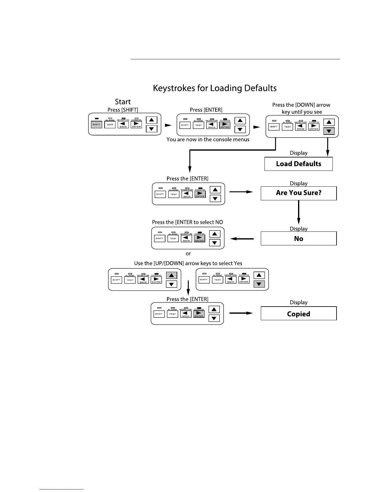 Raychem C910-485 - 4.2 Console Mode Menus: Factory Default Settings; 4.2 Console Mode Menus: Load Defaults Keystrokes