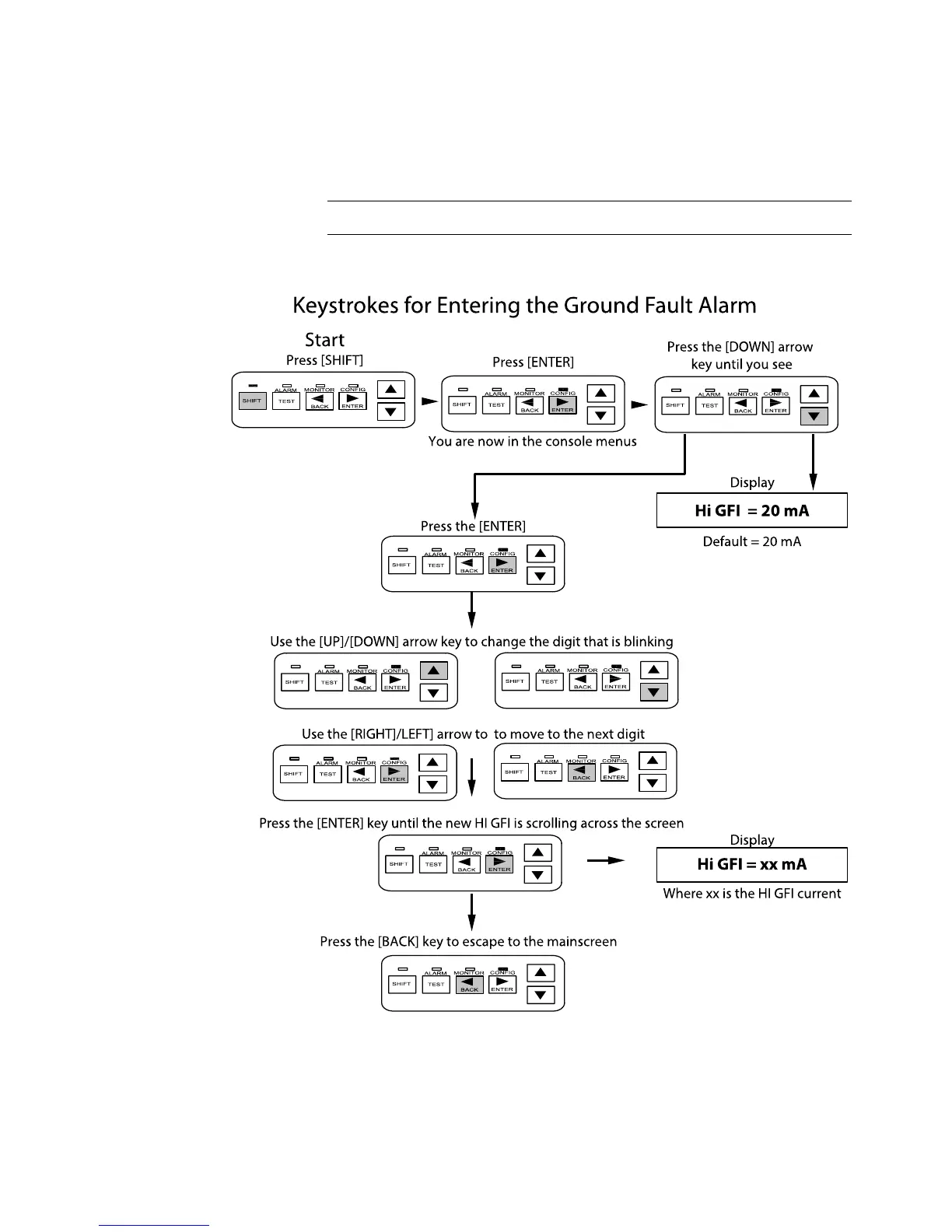 Raychem C910-485 - 4.2 Console Mode Menus: Ground-fault Current Alarm Level; 4.2 Console Mode Menus: Hi GF Alarm Keystrokes
