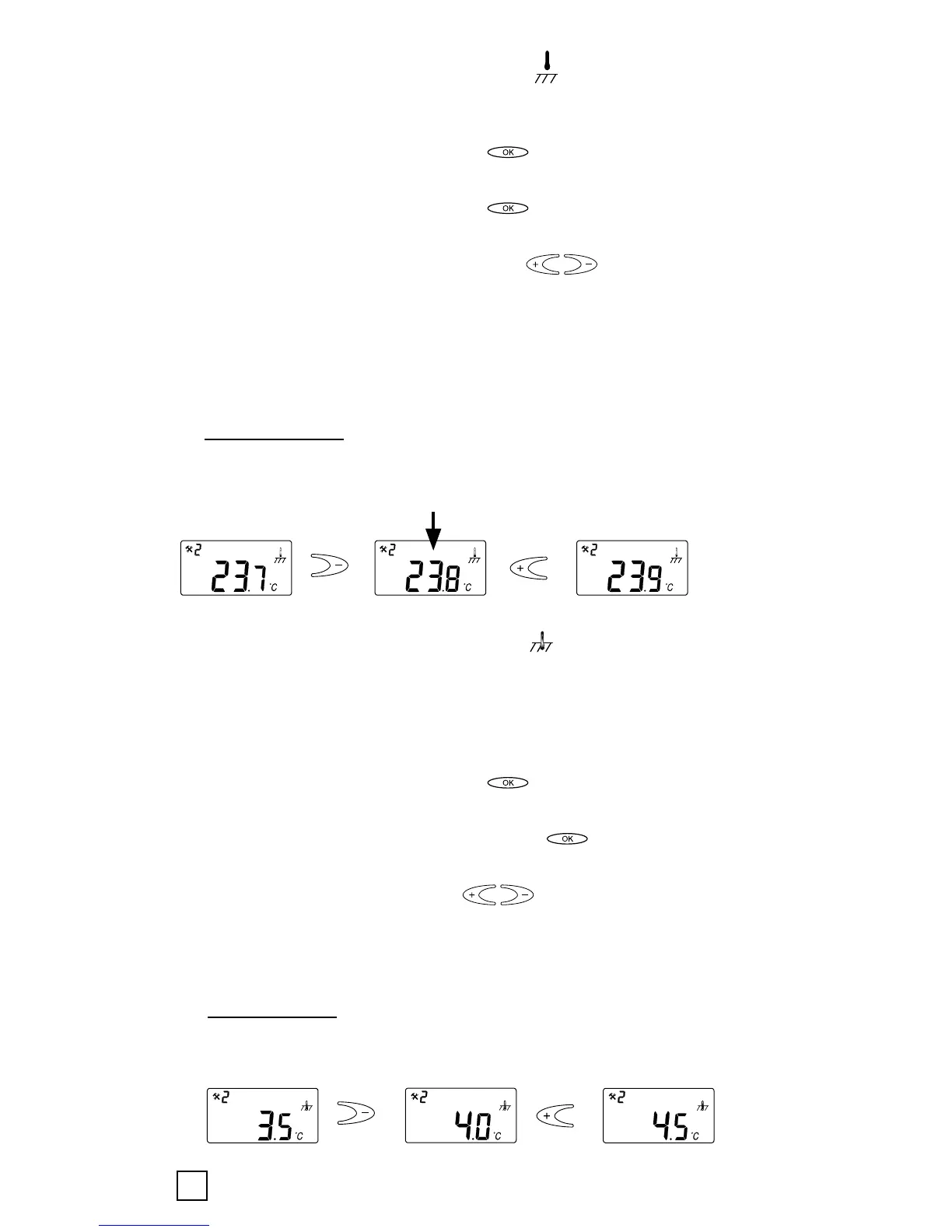to adjust the room temperature with +/- keys.