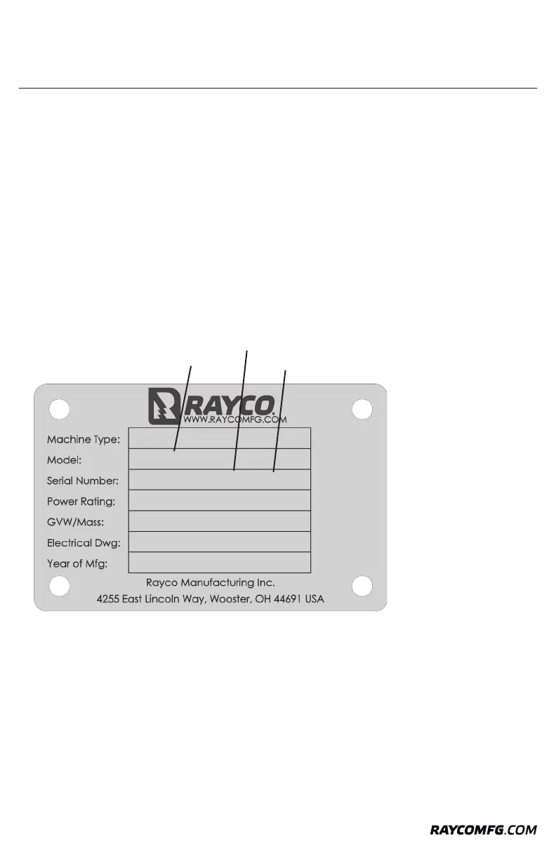 Whenever communicating with Rayco or your Rayco dealer, have your machine serial number handy, as it can help pinpoint