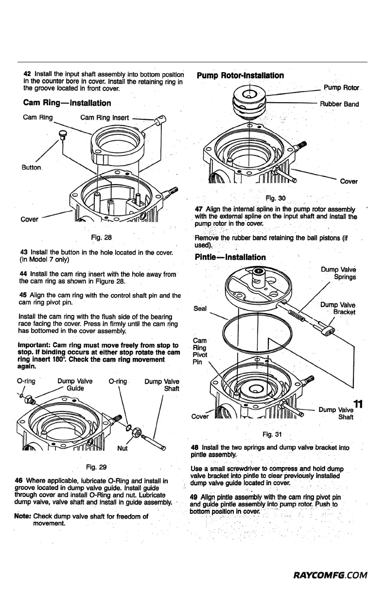 Rayco RG25HD - Pintle Installation; Pump Rotor Installation; Cam Ring Installation