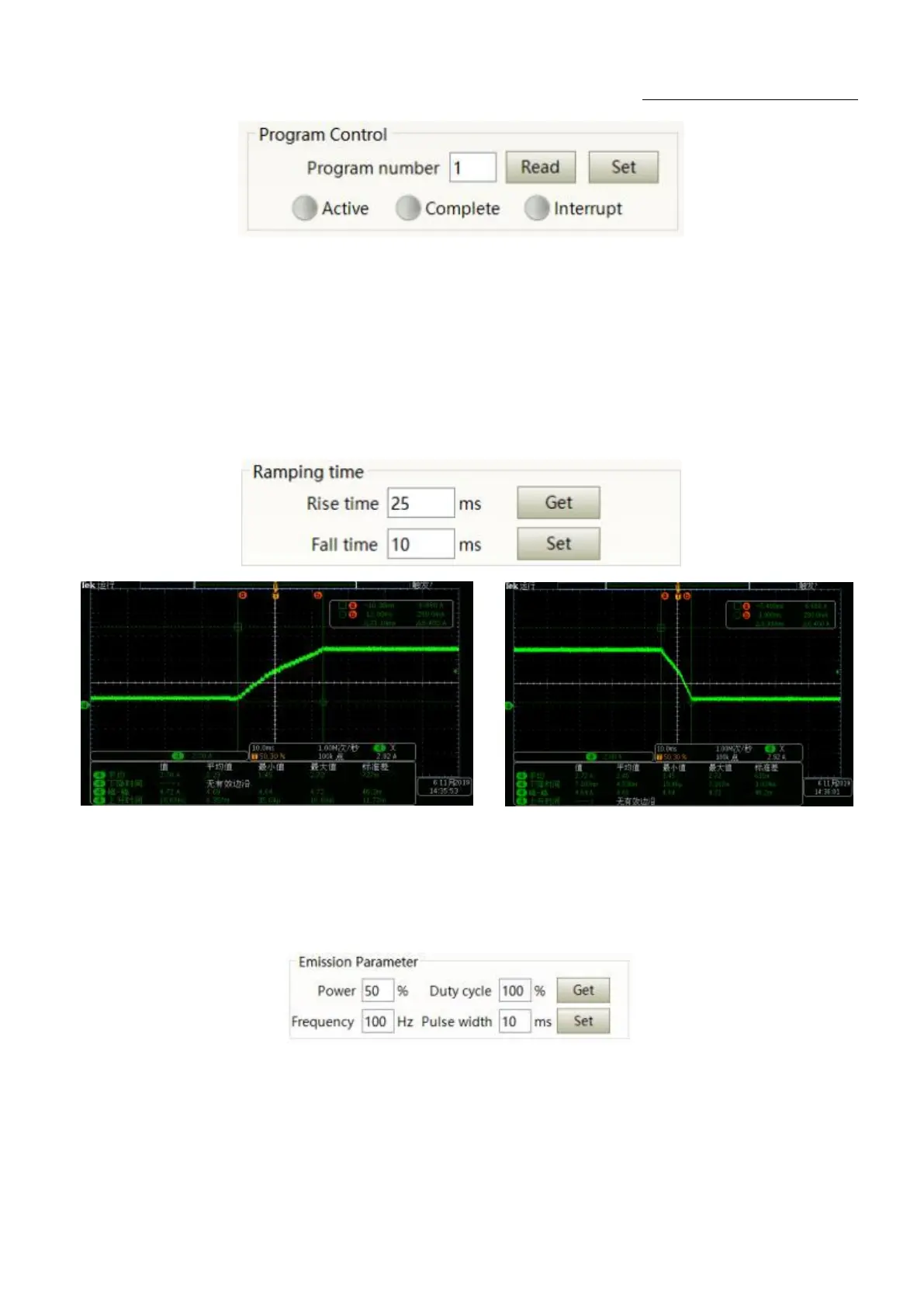 parameter‟ to read the power rise and fall times stored in the laser. Click „setting parameters‟ to set a new