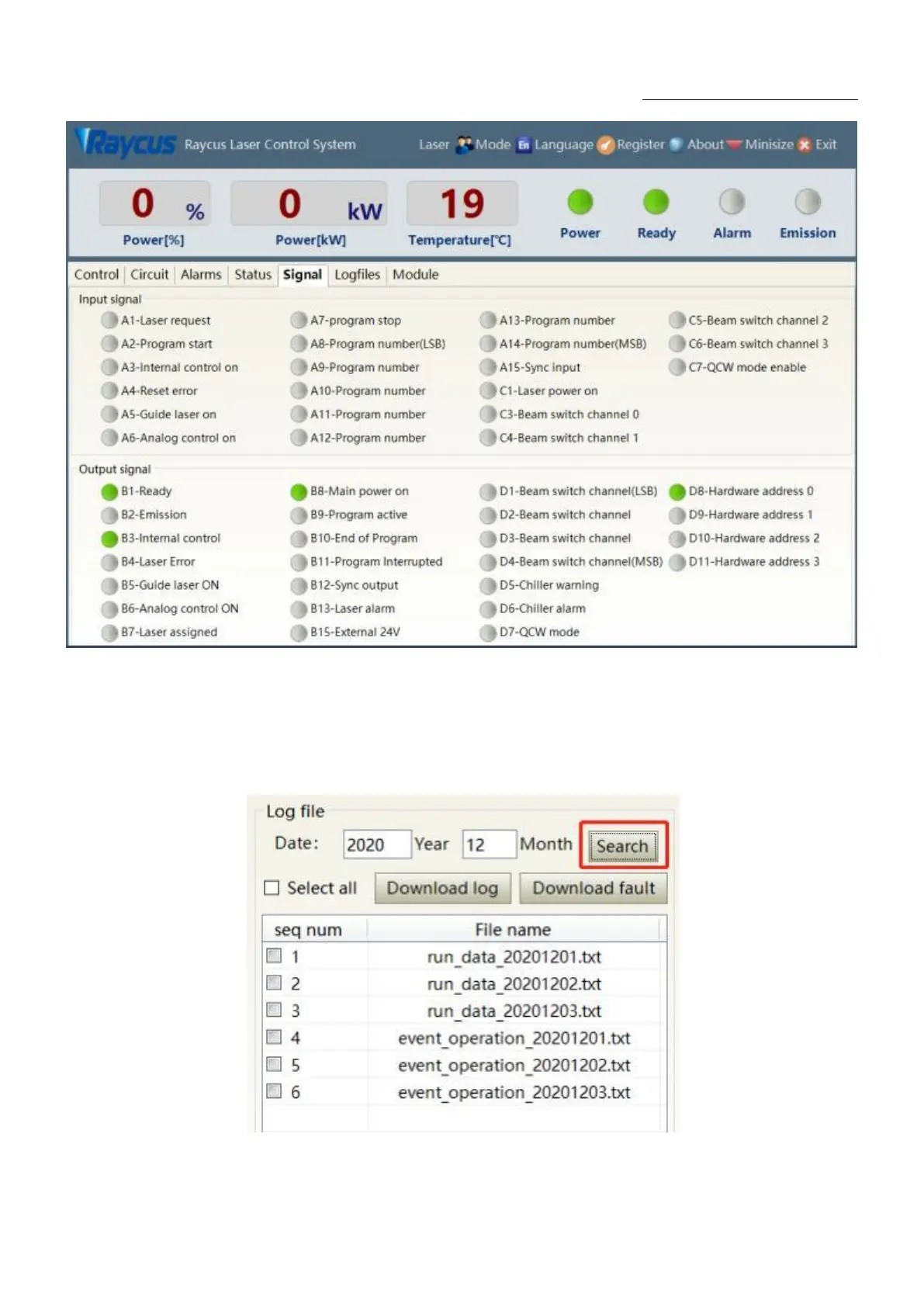Laser‟s working log interface is as Figure 45. User can query work log by entering the time to query