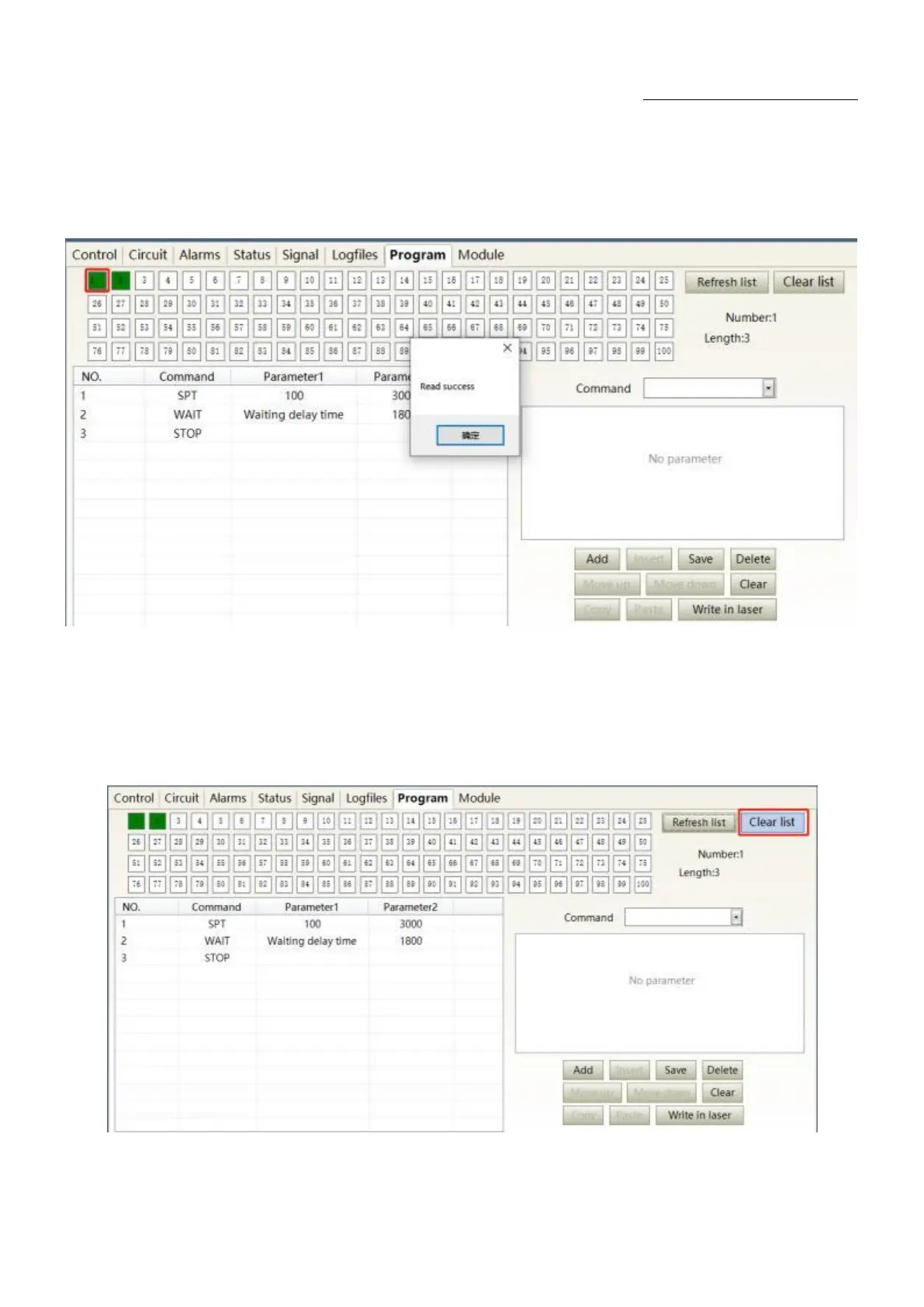 programmings stored inside the current laser. will emptied by click „Empty Program List‟.