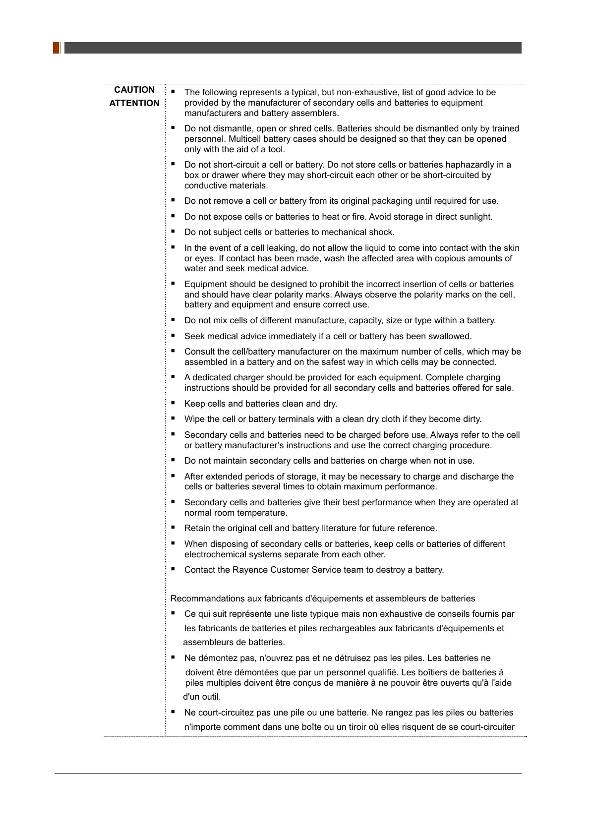 Recommandations aux fabricants d'équipements et assembleurs de batteries