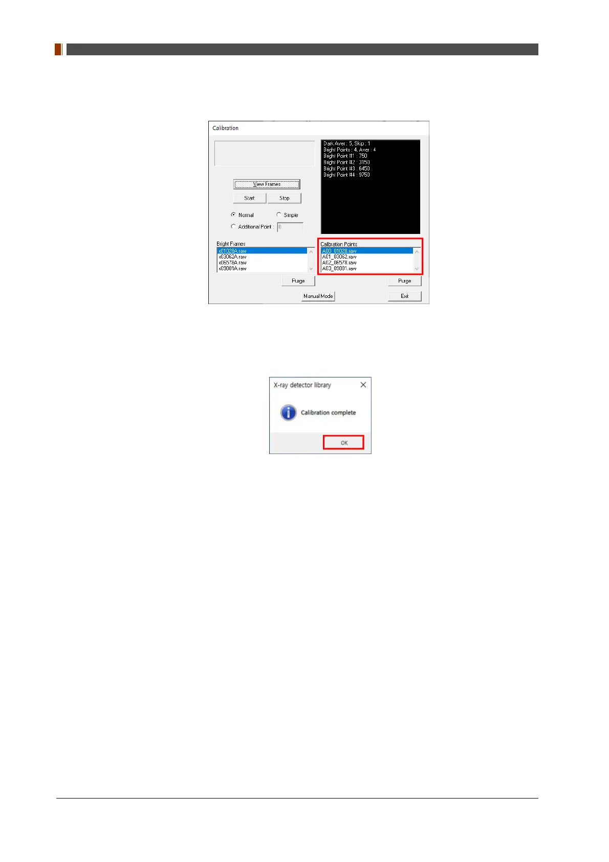 6. For each calibration point, 4 frames must successfully be acquired. Repeat the step 4-5 for