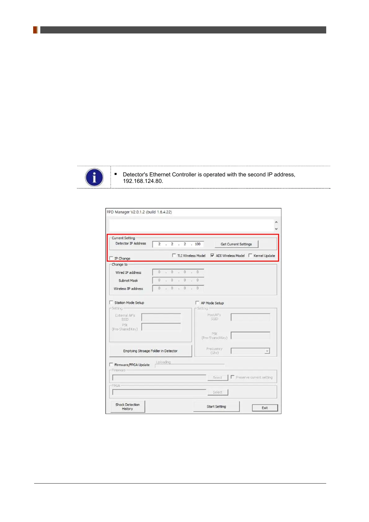 4. Type detector's current IP address at "Detector IP Address" from "Current Setting" as