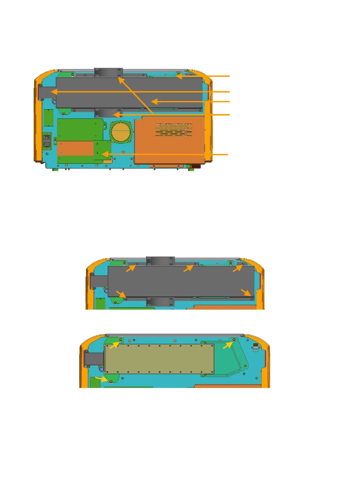 5. Loosen the five screws marked below and carefully remove the cover of the lasertube