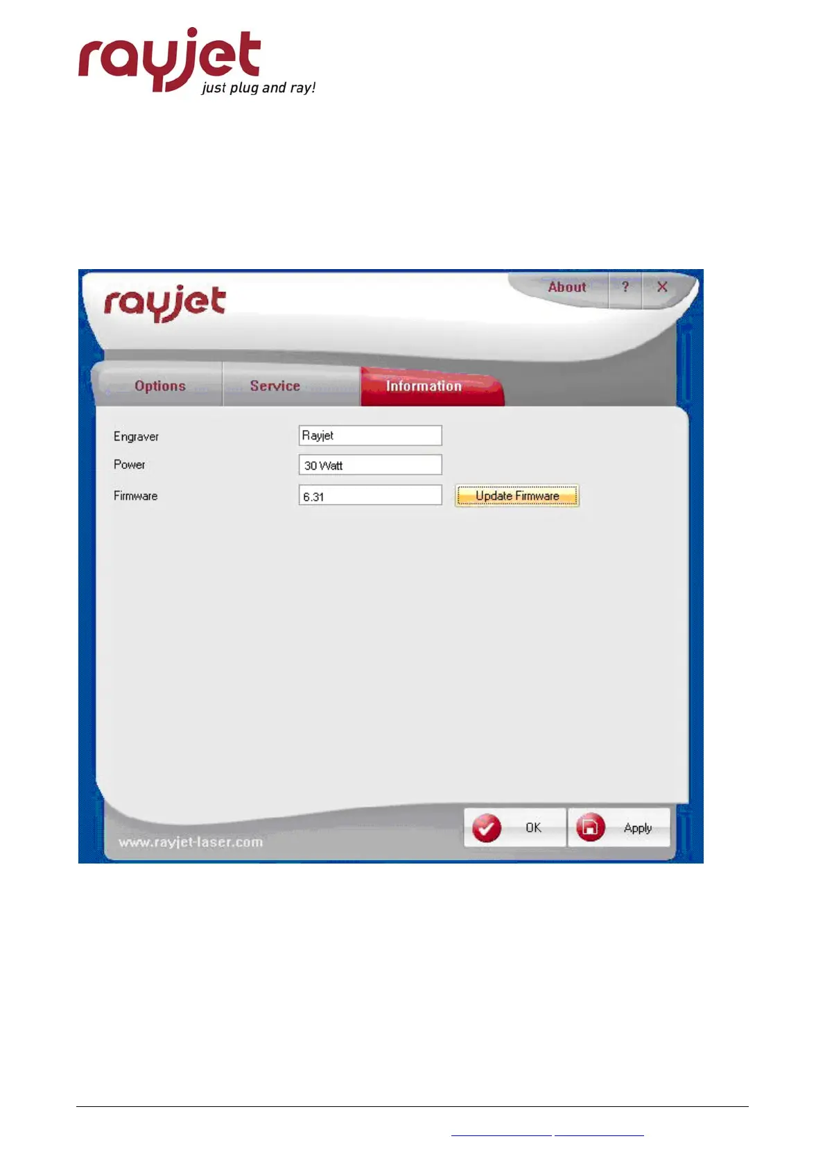 Firmeware shows the actually installed firmware version of the laser machine. To update the