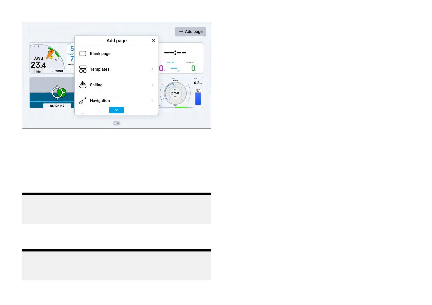 •[Sailing]—Arangeofselectablepresetdatapageswhicharepopulated