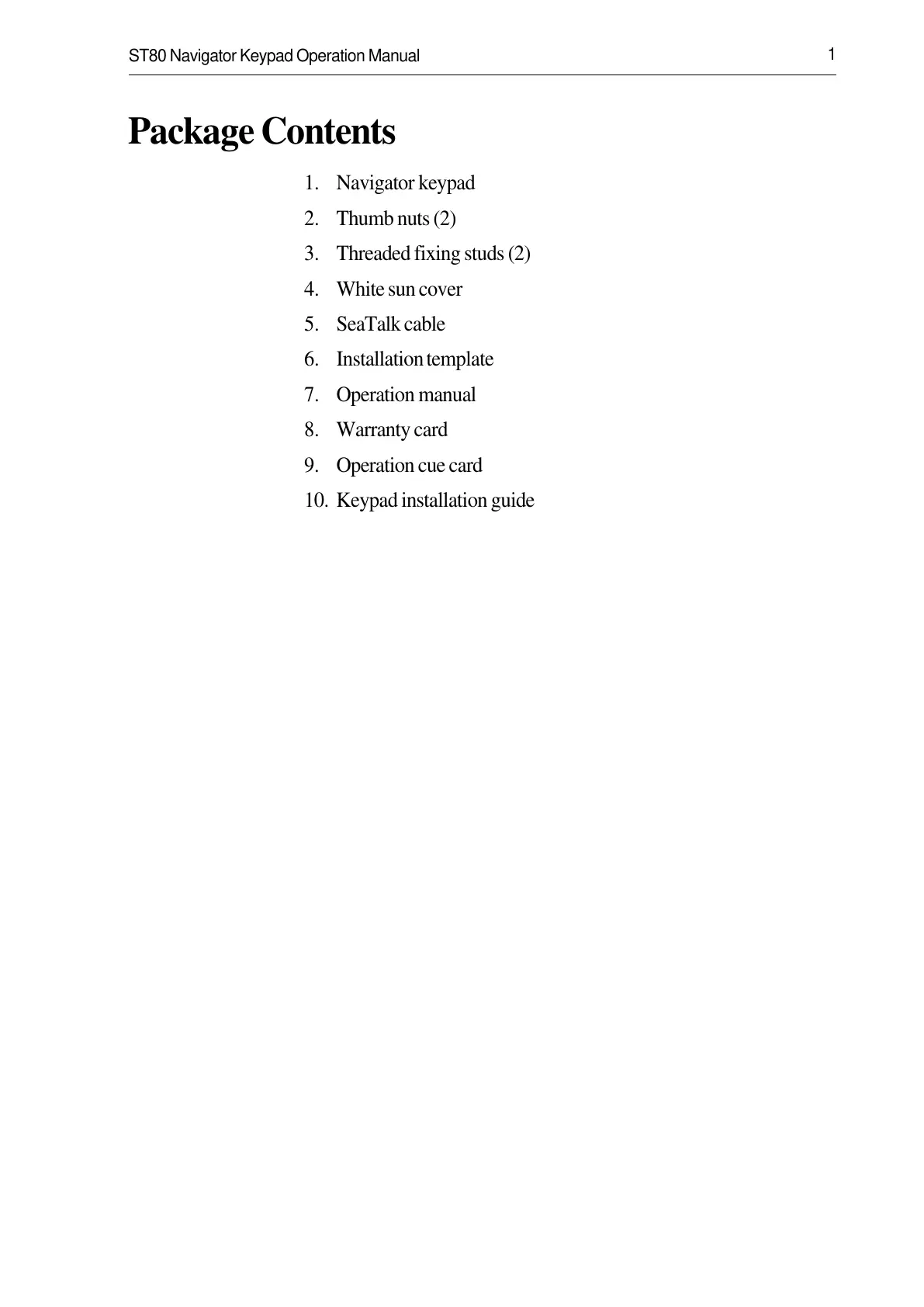 Raymarine Autohelm ST80 - Default Chapter; Package Contents
