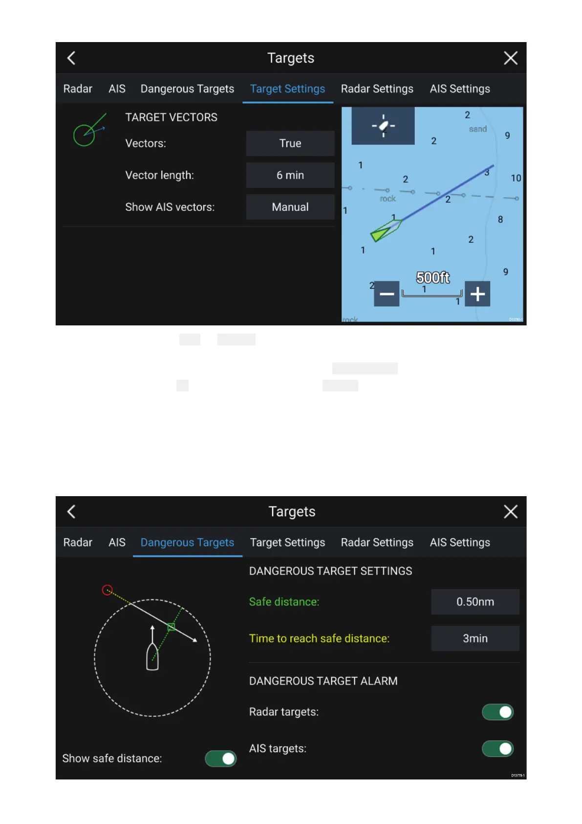 Targetvectorscanbeenabledanddisabledforindividualtargetsby,pressingandholdingonanAIS