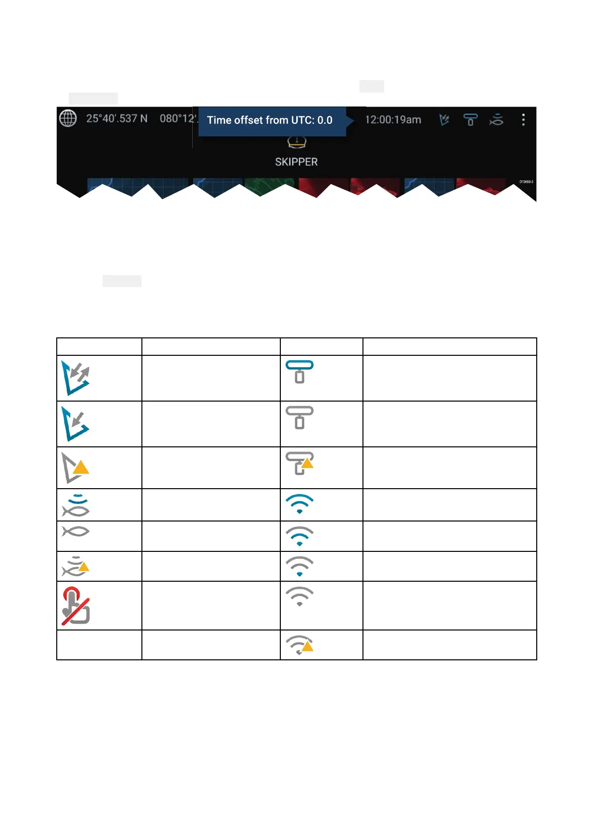 ThestatusofconnectedAIS,RadarsSonars/TransducersarereportedintheStatusarea: