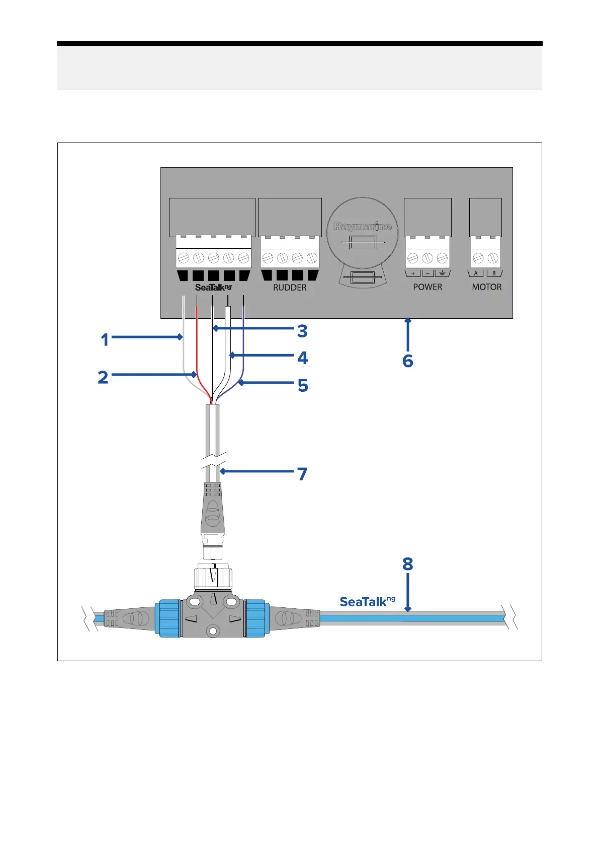 ACUは付属のスパーケーブルを使用してSeaTalkng ®バックボーンに接続します。