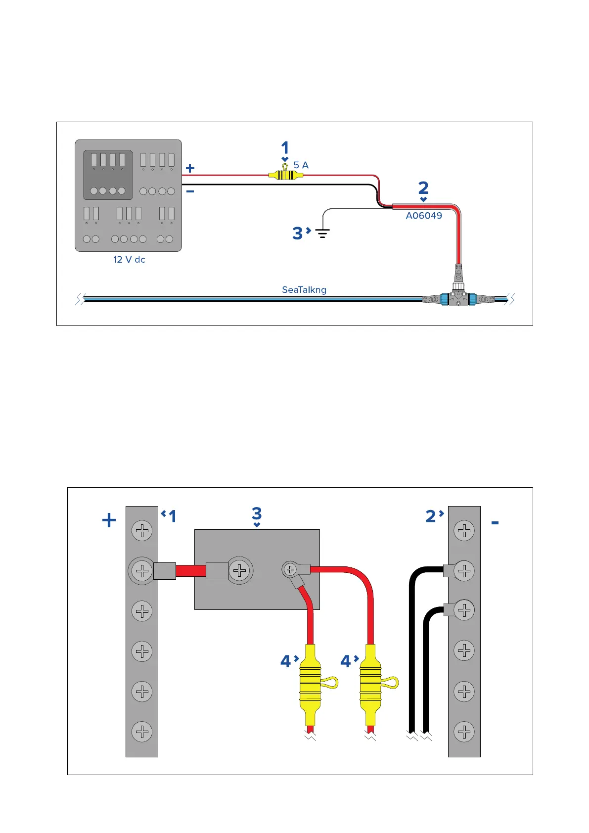 - 理想的には、SeaTalkng ®電源ケーブルは、船舶の配電盤または工場に設置された配電ポイントの適切なブレーカー
