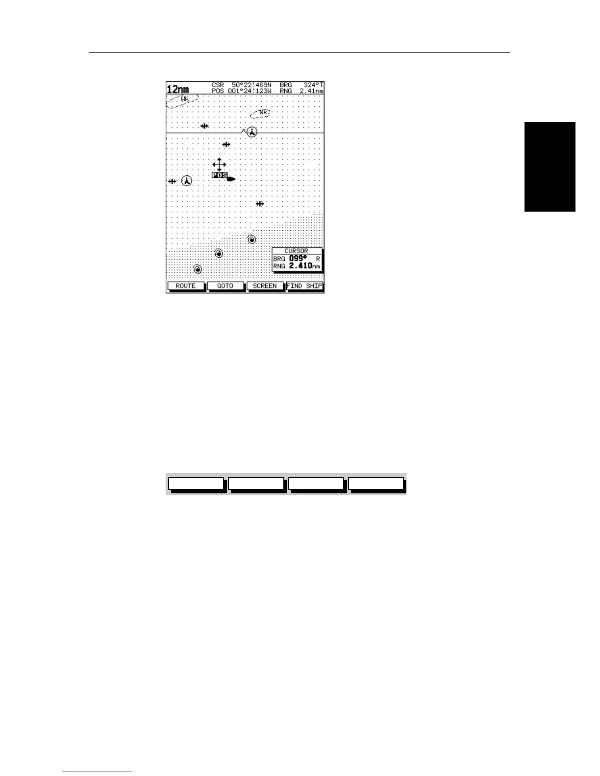 chart is redrawn with the vessel position at the cursor.