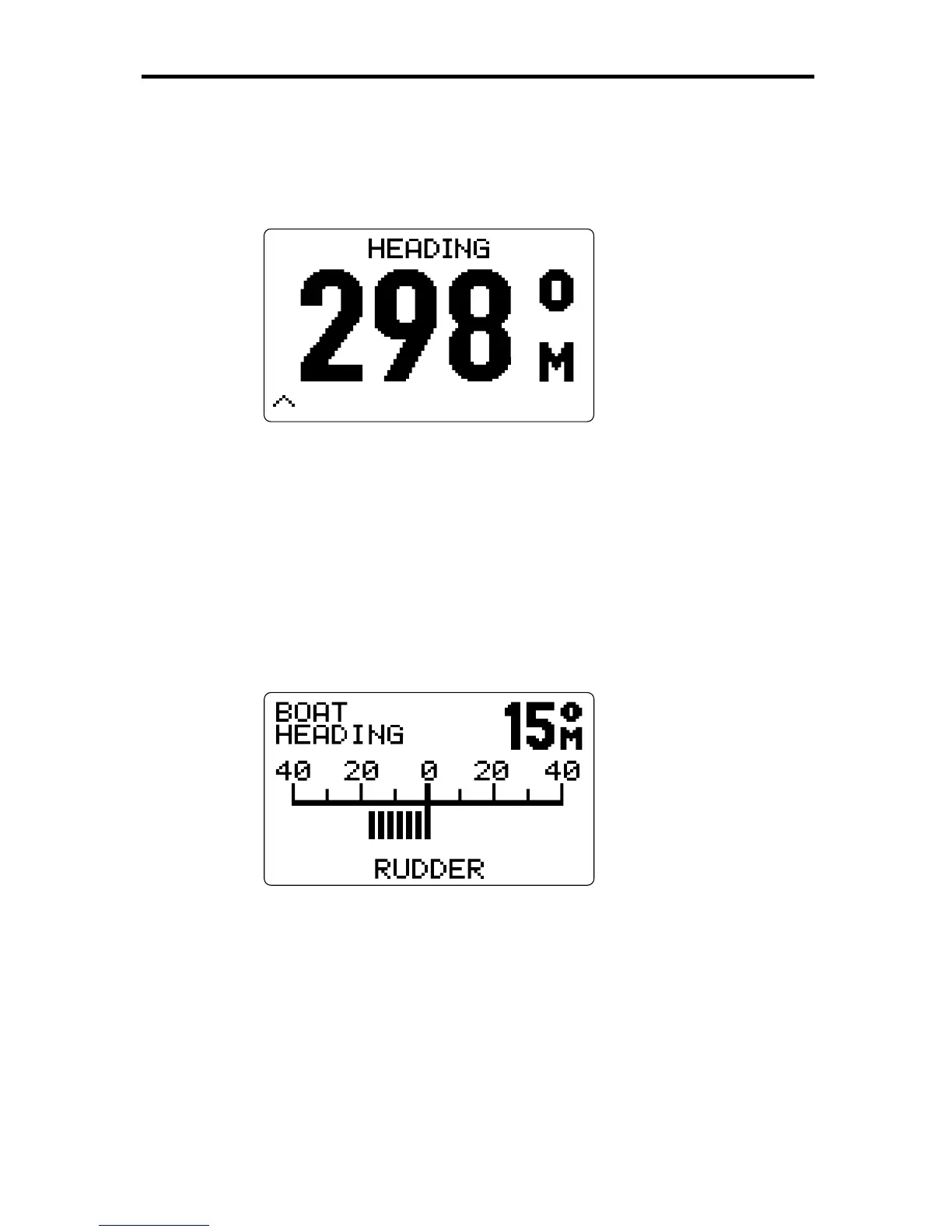 This display provides the value of the vessel’s heading, together with a