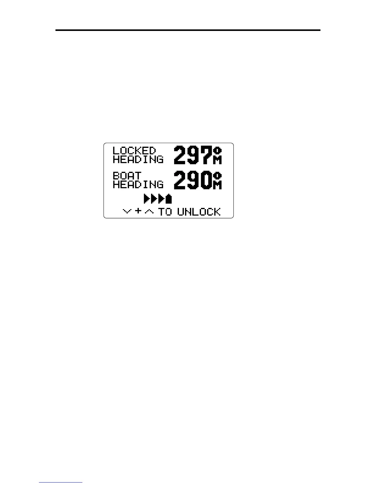 This display shows the locked heading and the boat heading, in
