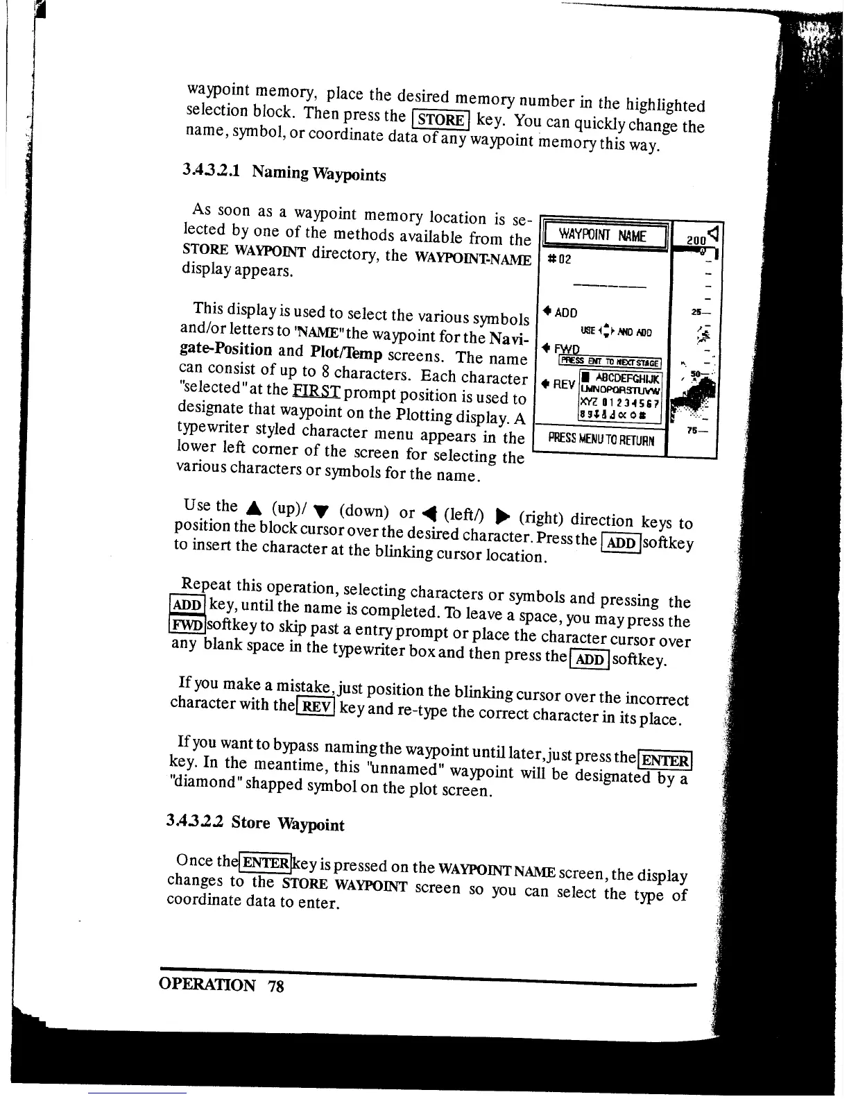 Raymarine V850 - 3.4.3.2.3 Naming Waypoints; 3.4.3.2.4 Store Waypoint; 3.4.3.2.5 Editing Waypoints