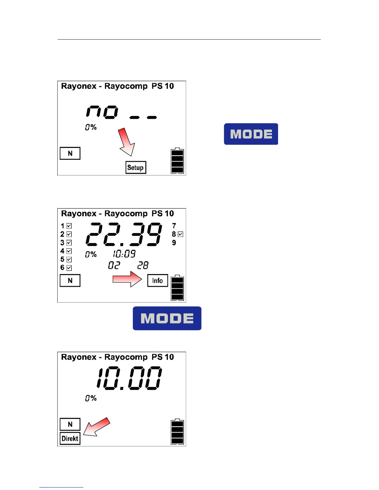 The Rayocomp PS 10 changes over to the menu item “Info“ and displays: