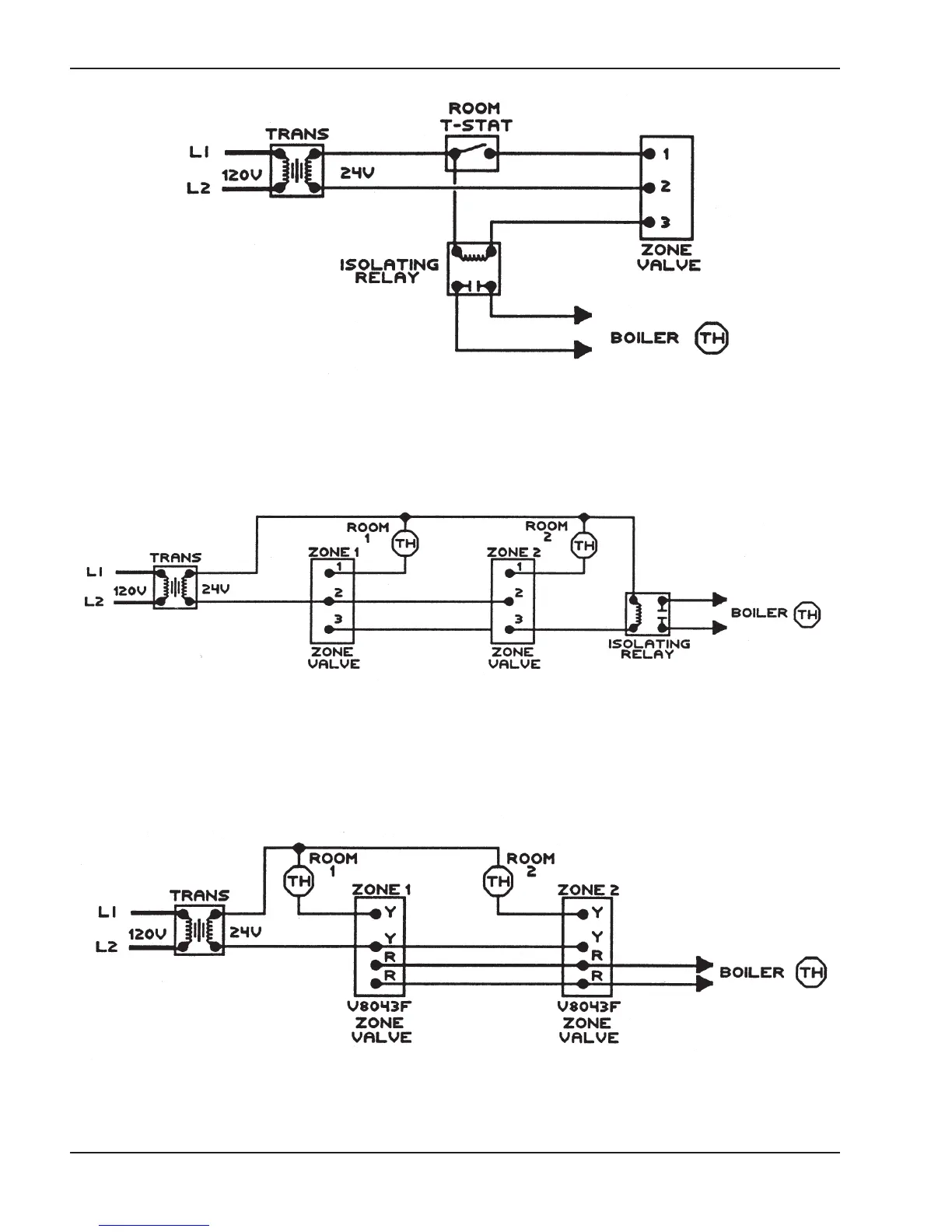 NOTE: Maximum three (3) zone valves per one (1) 40 VA transformer.