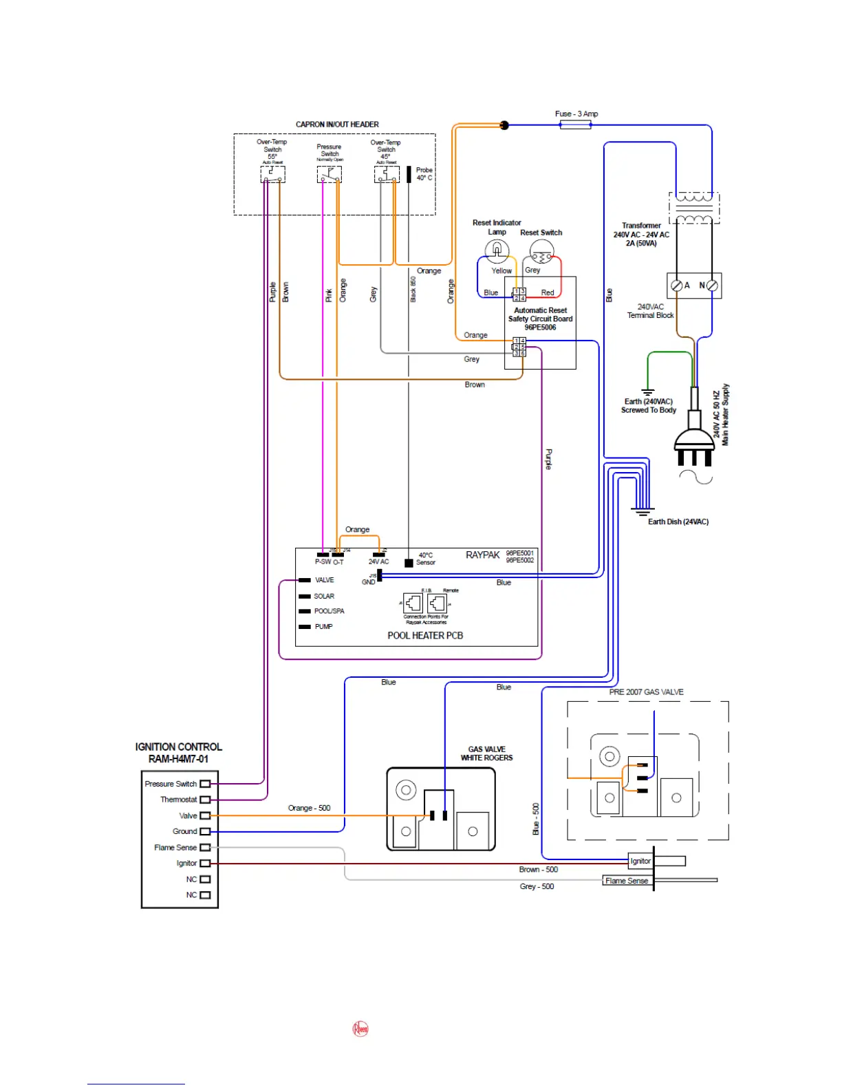 Raypak 131 - 131 Wiring Diagram - Black Control Board (14;4;09 onwards)