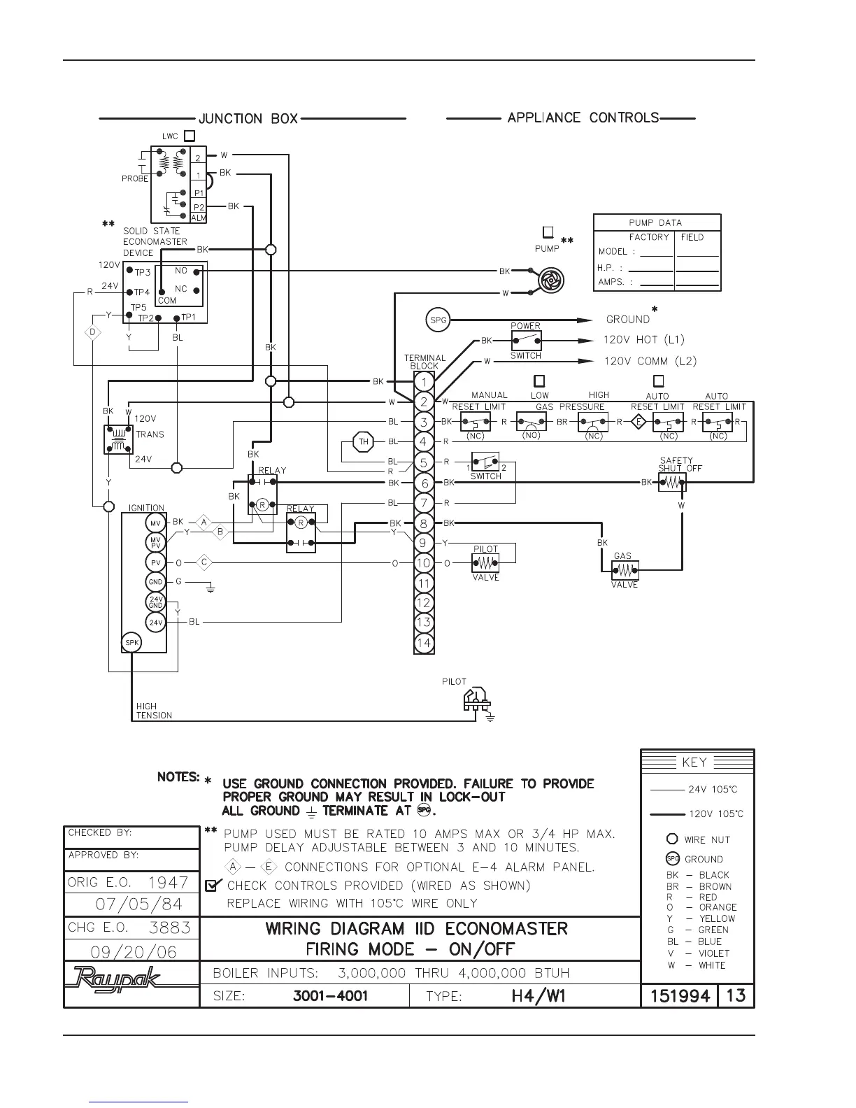 Raypak 1334001 - Wiring Diagram-WH1 3001-4001