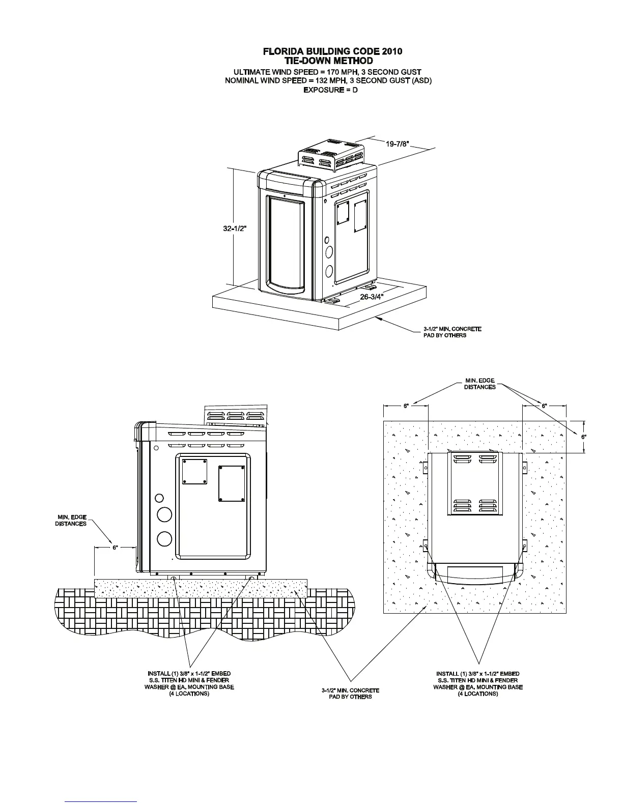 Raypak 259 - FLORIDA BUILDING CODE INSTALLATION; Tie-Down Method for High Winds