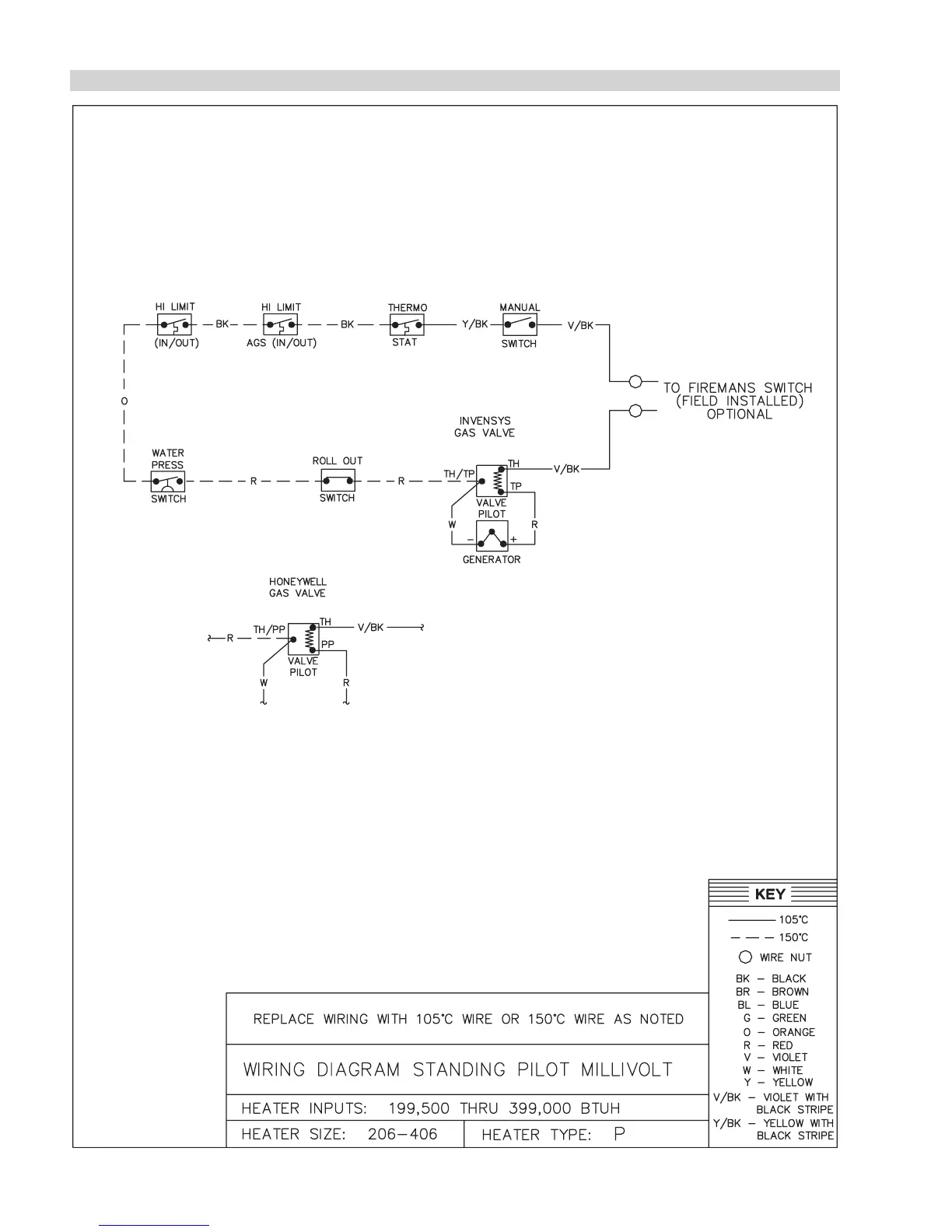 Raypak 266A - Wiring Diagram - Millivolt (Mechanical Thermostat); Key
