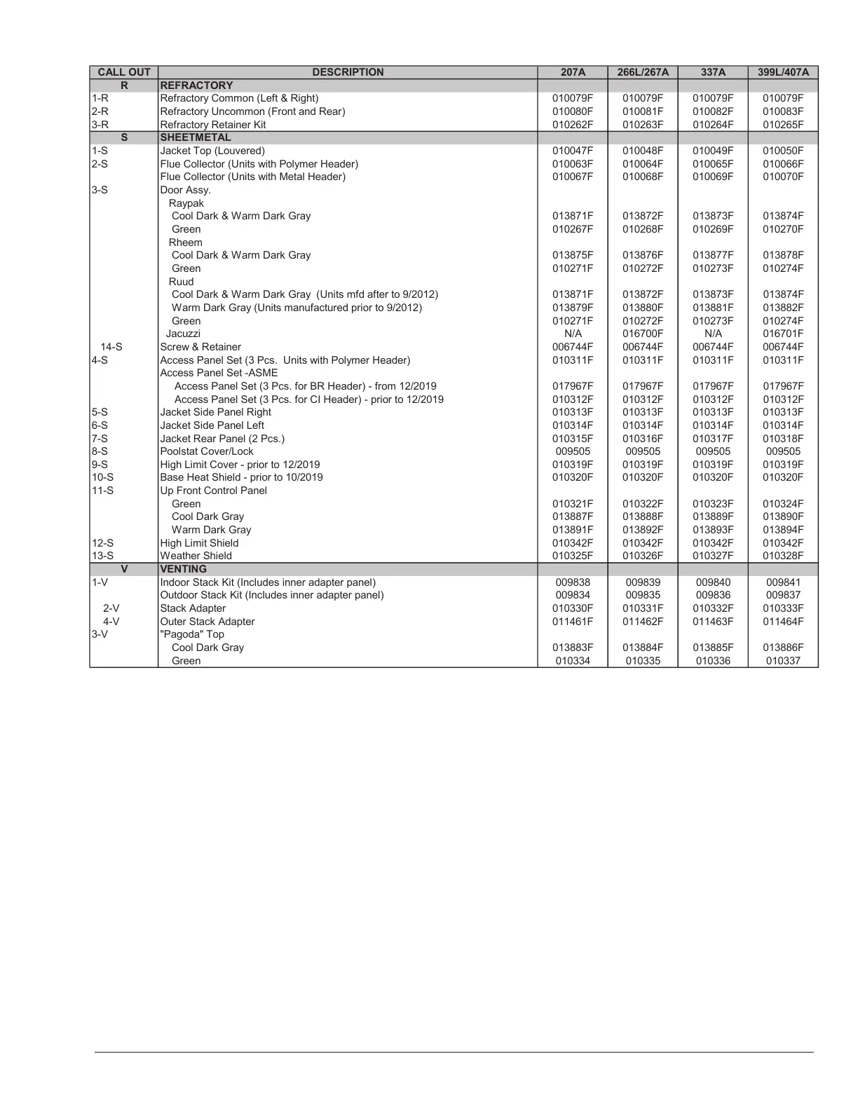 Cool Dark & Warm Dark Gray (Units mfd after to 9/2012) 013871F 013872F 013873F 013874F