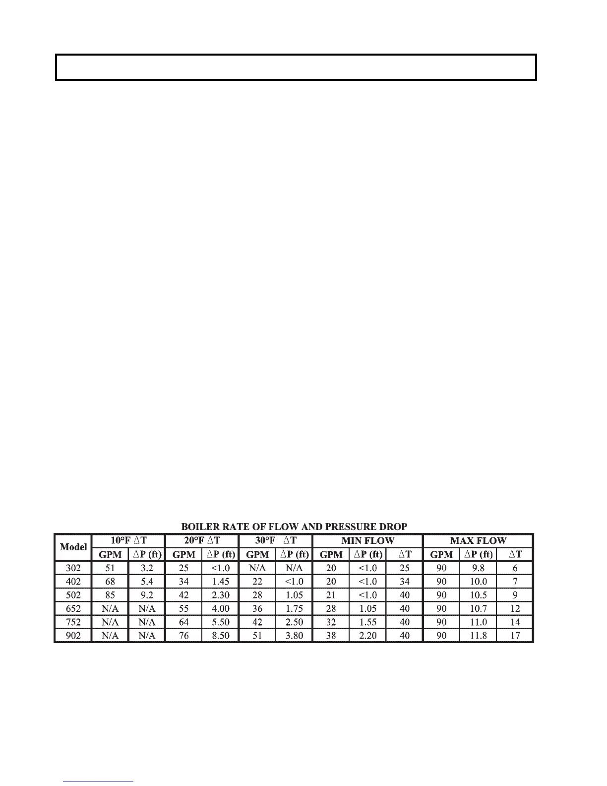 boiler is firing at full rate). If a Delta T larger than 20°F is necessary, see Table D-1 for minimum flow rate requirements.