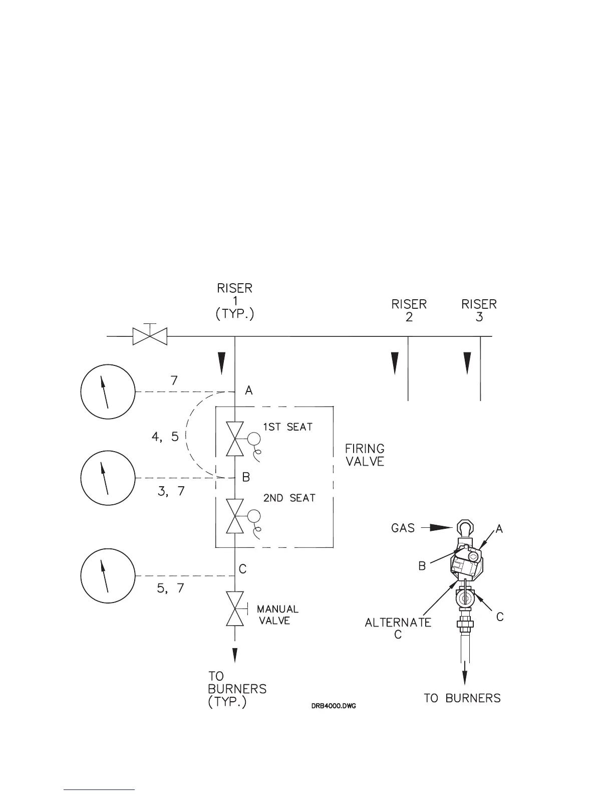4) Next, close the upstream manual gas valve and remove the manometers from test point A and from test point B.