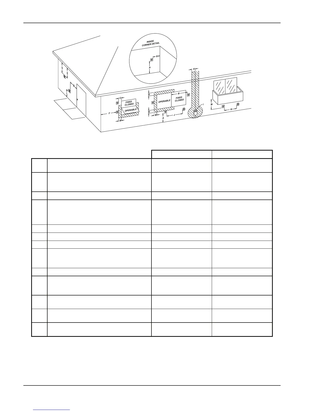 C Clearance to permanently closed window **